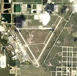 In 1941, the U.S. Army Corps of Engineers built an airfield on the current airport property as a combat pilot training base for the U.S. Army Air Forces' (USAAF) Third Air Force, naming the facility Punta Gorda Army Airfield.[5][6] By 1944, the base reached its peak in housing 1,000 personnel, including two squadrons of student pilots.[5]