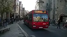 Bus approaching Carfax in Queen Street, Oxford.