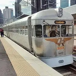 In 1959, ten units were ordered from Commonwealth Engineering. These differed from the prototypes in having sheeted stainless steel and 150 hp (110 kW) Rolls-Royce engines. In 1963, a further five were ordered, followed in 1971 by a further ten.[1] The last four were completed as Passenger Luggage Driving Trailers with access doors at both ends instead of a streamlined front, allowing the formation of three-car (and occasionally four-car) trains.