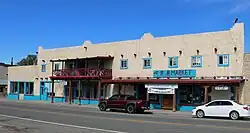 Dario Gallegos opened R&R Market with $452 in May 1857. The business was established by a family of Spanish conquistadors.[4][5] The store was originally made of 25-inch adobe bricks and has a foundation of rocks with mud mortar.[6] R&R Market survived an attack by Native Americans in 1858 and fires in 1895 and 1945 that almost destroyed it. The store's brick walls were eventually reinforced with stucco, concrete, and plaster.[5][2] The store building was constructed in territorial adobe style.[6]