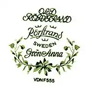 Another of Rörstrand's long-running dinnerware sets was "Green Anna" (Swedish: Gröna Anna or Grön Anna). Starting in 1926, the design was produced by the Gothenburg Porcelain Factory. "Ostindia" is an example of one of the factory's popular designs; it is still produced today.