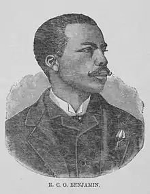 R. C. O. Benjamin (March 31, 1855 – October 2, 1900) was a journalist, lawyer, and minister in the United States. He was an editor or contributor to numerous newspapers throughout the country, and may have been the first black editor of a white paper when he became editor of the Daily Sun In Los Angeles. He was also possibly the first black man admitted to the California bar, and may have been admitted to the bar in twelve states. In 1900 he was working as a prominent lawyer in Lexington Kentucky when he was beaten for helping register black voters by a white man who opposed his efforts. Later that day he was killed by the same man.