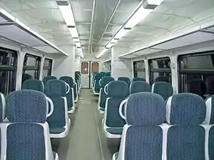 RA1 (Russian: РА1 - рельсовый автобус, тип 1) (Rail Bus, 1st type) - a series of rail buses that unified structurally with metrovagon. It is produced by JSC "Metrovagonmash". That is an independent mobile unit for the carriage of passengers. The term "Motor coach" is considered more correct by the majority of specialists. However PA1 is classified exactly as "railbuses" in the JSC "Metrovagonmash" factory documentation. Designed for the transport of passengers on non-electrified sections of railways and can be used for urban, suburban and interregional communication. Railbus have cabins at both ends of the car, and do not require a turn. At the same time, RA1 can be operated singly and in the system of many units (in pairs with 2-3 sections) both. The family PA1 is represented by six models. The body, the crew and the undercarriage are made on the basis of the "Yauza" subway wagons.