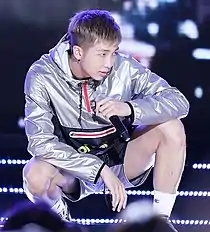On March 17, 2015, RM released his first solo mixtape, RM, which ranked 48th on Spin's "50 Best Hip Hop Albums of 2015".[35] The mixtape addressed a variety of topics, such as RM's past on the track "Voice" and the idea that "you're you and I'm me" in the track "Do You".[29] When discussing the track "God Rap", RM described himself as an atheist, believing that only he could determine his fate.[28] The production process for the mixtape lasted around four or five months, with RM working on it in between BTS' activities.[10] The following year, RM recalled that he had largely written about the negative emotions he had been carrying, such as anger and rage, but stated that the songs are not "100% under [his] sovereignty" and that he felt many parts of the mixtape were "immature". He also added that he hoped his next mixtape to be something he worked on by himself.[10] Following RM's release, he featured along with Kwon Jin-ah on Primary's "U" that April.[14] In May, he collaborated on Yankie's ProMeTheUs alongside Dok2, Juvie Train, ILLSON, Topbob and Don Mills.[36] In August, RM collaborated with Marvel for Fantastic Four's soundtrack in Korea, releasing the digital single, "Fantastic" featuring Mandy Ventrice through Melon, Genie, Naver Music and other music platforms.[37] In September, he headlined hip-hop concert All Force One 2015 - Hot & Cool alongside Korean veteran rappers Paloalto and Verbal Jint.[38] In August 2016, vocal duo Homme released a single titled "Dilemma", which was co-produced by RM and Bang Si-hyuk.[39]
