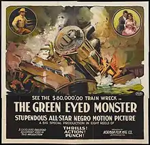 The Green Eyed Monster, an all black romantic adventure by the Norman Film Manufacturing Company with an elaborate and expensive train wreck.