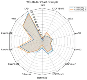 A radar chart showing the similarity of two communities that consist of connected genomic windows; see genome architecture mapping.