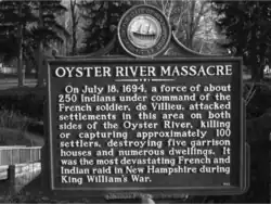 The Raid on Oyster River (also known as the Oyster River Massacre) happened during King William's War, on July 18, 1694, at present-day Durham, New Hampshire.