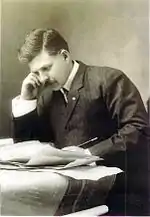 Olds was born in Geneva, Ohio, the youngest son of blacksmith and pattern-maker Pliny Fiske Olds and his wife, Sarah Whipple Olds. His parents moved the family to Cleveland, Ohio, when Olds was still a boy. He eventually settled in Lansing, Michigan, where he attended high-school before dropping out so that he could work full-time at the family company, P.F. Olds & Son. The company built and sold some steam engines but made most of its money doing repair work.[2] While in Lansing he also married Metta Ursula Woodward on June 5, 1889.[3]
