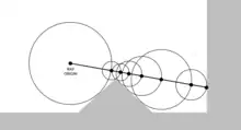 In sphere tracing,[1] or sphere-assisted ray marching an intersection point is approximated between the ray and a surface defined by a signed distance function (SDF). The SDF is evaluated for each iteration in order to be able take as large steps as possible without missing any part of the surface. A threshold is used to cancel further iteration when a point has reached that is close enough to the surface. As powerful GPU hardware became more widely available, this method was popularized by the demoscene and Inigo Quilez.