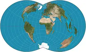 - ↑ Snyder, John P. (1993). Flattening the Earth: Two Thousand Years of Map Projections. ISBN 0-226-76747-7..