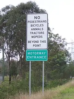 2. Motorcycles' access on expressways and semi-expressways (자동차전용도로 jadongcha jeonyong doro, literally 'motor vehicles only road') was prohibited by a Road Traffic Act amendment in 1992[6][7] | ||
