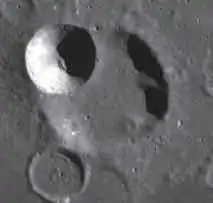 Resnik is a small lunar impact crater that is located within the interior of the huge walled plain Apollo, on the Moon's far side. Apollo is a double-ringed formation with a central floor that has been flooded with basaltic lava. Resnik is located at the northern edge of the dark area of the surface. It lies to the southwest of the smaller crater McAuliffe.