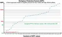 - ↑ BSI PH/4 Committee (2005). "Appendix C. Protection Factors.". BS EN 529:2005 Respiratory protective devices. Recommendations for selection, use, care and maintenance. Guidance document. London: British Standards Institution (BSI). ISBN 978-0-580-46908-4.