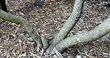 The bark is thin and easily damaged from mechanical impact; branches droop as the tree grows, and will require pruning for vehicular or pedestrian clearance beneath the canopy; routinely grown with, or trainable to be grown with, multiple trunks. The tree wants to grow with several trunks, but can be trained to grow with a single trunk. It has no thorns.