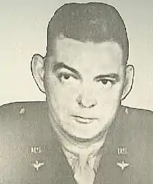 He was assigned to the IX Bomber Command in August 1942, and served overseas in the North African and European Theater of Operations as executive officer of a bombardment group, chief of staff, XX Bomber Command, and in November 1943, became commanding officer of a bombardment group. In January 1944, he was named administrative officer of the IX Bomber Command in the European Theater of Operations, promoted to brigadier general June 1944 (age 28),[2] and in November 1944, was announced as chief of staff of the IX Bomber Command, which was then serving in France. In August 1945, he became commanding general of the 99th Bomber Group in Germany and three months later, was assigned to Headquarters Air Forces Personnel Distribution Command, Louisville, Kentucky. In March 1946, he was announced as commanding that installation. The same month his appointment as a brigadier general was terminated and he was administratively reduced to the rank of colonel. He retired on July 1, 1950.