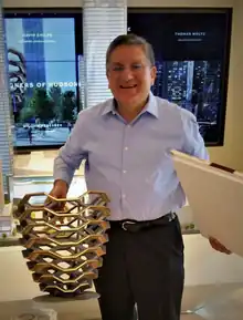 ![]() Richard holding a model he created for the Vessel in NYC | |