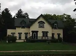 The Ring Lardner House is a 1+12-story Gothic Revival house with a gabled roof and dormers. It is clad with stucco. The dormers and roof have ornamental vergeboards [3]