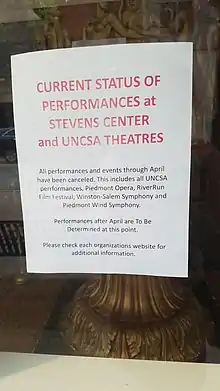 - ↑ "UPDATE: COVID-19 and RiverRun". RiverRun International Film Festival. 13 March 2020. Retrieved 22 March 2020.