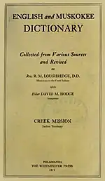 - ↑ Creek Language Archive - The Bookshelf Archived 2008-05-09 at the Wayback Machine, The College of William and Mary. Accessed January 22, 2008. "For almost a hundred years, there was only one Creek dictionary, first published in 1890"