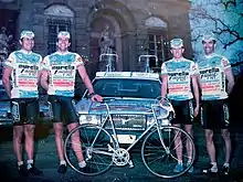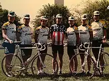 That year the team, sponsored by Gianni Motta, became the first U.S. team to enter the 1984 Giro d'Italia,[11][12]Giro di Puglia, Giro di Toscana, Giro del Trentino and Tour de Suisse and other European races.