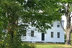 The main block of the house is a 2+12-story wood-frame structure, five bays wide, with a side gable roof and four side chimneys in the brick end walls. The main entrance, centered on the east-facing facade, is topped by a fanlight window and flanked by pilasters of Doric order, which support a lintel with entablature. There are secondary entrances on the side walls. The rear ell joins the house to a barn. The upstairs of the main block features a distinctive hinged wall, enabling the space to be converted into a sizable ballroom for entertainment.[2]