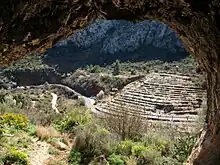 There has been much debate over the dating of Levantine paintings, and whether they belong to the Mesolithic, the end of the Paleolithic, or the Neolithic; they clearly represent a very different style from the much more famous Art of the Upper Paleolithic in caves on either side of the Pyrenees, but yet may well show continuity with it.[1] According to UNESCO, the oldest art in the World Heritage Site is from 8,000 BC, and the most recent examples from around 3500 BC. The art therefore spans a period of cultural change. It reflects the life of people using primarily hunter-gatherer economic systems, "who gradually incorporated Neolithic elements into their cultural baggage".[2] Later scenes show men leading horses, and some cattle shown may be domesticated.[3] The chronology of Levantine Art overlaps with that of Iberian schematic art, and examples of both types of art can be found at some sites. Equally some sites continued to attract visitors in later periods, as shown by inscriptions in the Iberian language and Latin, for example at the Caves of El Cogul; these may have been associated with repainting of figures.[4]