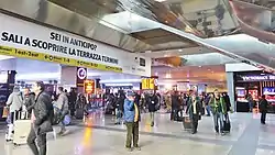 Roma Termini (in Italian, Stazione Termini) (IATA: XRJ) is the main railway station of Rome, Italy. It is named after the district of the same name, which in turn took its name from ancient Baths of Diocletian (in Latin, thermae), which lies across the street from the main entrance.[1][2] It is Italy's busiest railway station and the fifth-busiest in Europe, with a traffic volume of approximately 150 million passengers per year,[3] and with 850 trains in transit per day.[4]