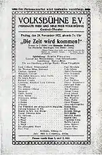 Programme sheet for Piscator's 1922 production of Rolland's drama The Time Will Come (1903), at the Central-Theater in Berlin.