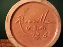 - ↑ Robert & Sharon Huxford (2001). Collectors Encyclopedia of Roseville Pottery, Vol.2. Collector Books. p. 7. ISBN 1-57432-235-4.