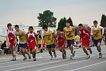 The boys' track distance core team leaving the starting line to begin the 3200 m run (2007)