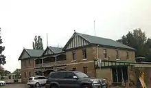 The Town Hall is a neo-classical style late-Victorian building. The adjoining Council Chambers is a timber building with a stone façade. The Post Office was completed in 1889[16] and has a verandah with twin cast-iron columns. The schoolhouse is a Victorian Rustic Gothic building with random rubble sandstone walls.[17]
