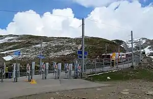 Rotenboden is a railway station on the Gornergrat railway, a rack railway which links the resort of Zermatt with the summit of the Gornergrat. The station is situated west of the Gornergrat, in the Swiss municipality of Zermatt and canton of Valais. At an altitude of 2,815 m (9,236 ft) above mean sea level, it is the second highest open-air railway station in Europe, after the Gornergrat railway station, on the same line.[1][2][3]