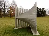 Round About is a public art work by artist Linda Howard located in Milwaukee, Wisconsin at the Lynden Sculpture Garden.[1] The abstract sculpture consists of aluminum bars stacked horizontally; it is installed on the lawn.[2]