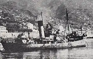 HMS Lady Shirley was a fishing trawler requisitioned by the Royal Navy in 1940 and converted for anti-submarine warfare.[13] It went into service in January 1941 and served with the 31st Anti-Submarine Group based at Gibraltar under the command of Lieutenant Commander Arthur Henry Callaway DSO RANVR, sinking the German submarine U-111.[14][15]