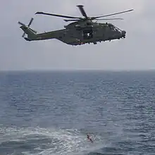 Danish Air Force AW101 hoisting from water