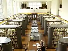 The library is based at two public sites: the Reading Room at the RIBA's headquarters, 66 Portland Place, London; and the RIBA Architecture Study Rooms in the Henry Cole Wing of the V&A. The Reading Room, designed by the building's architect George Grey Wornum and his wife Miriam, retains its original 1934 Art Deco interior with open bookshelves, original furniture and double-height central space. The study rooms, opened in 2004, were designed by Wright & Wright Architects.[53] The library is funded entirely by the RIBA but it is open to the public without charge. It operates a free learning programme aimed at students, education groups and families, and an information service for RIBA members and the public through the RIBA Information Centre.[54]
