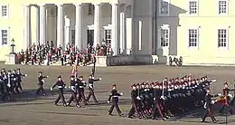 In the past, the Sovereign's Platoon from the Senior Division formed the Colour Party with the Banner on the left flank of the parade; after the inspecting officer had completed inspection, the Colour Party would move to the centre place of the parade before the Saluting Base, awaiting the new Sovereign's Platoon to take possession of the Banner.[37][38] The new Sovereign's Platoon would keep the Banner until handing it to the next Sovereign's Platoon in the next Sovereign's Parade; they had the privilege of leaving the parade before other divisions after the Senior Division officer cadets had marched into the Old College and the remainders of the parade would salute the banner while they were leaving the parade square.[37]