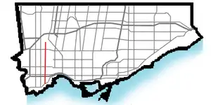 Royal York Road, historically known as Church Street or New Church Street, is a north-south arterial road in Toronto, Ontario, Canada. It is a concession road, 5 concessions (10 km) west of Yonge Street, and runs through many residential neighbourhoods, most notably Mimico and the Kingsway. It is classified as a "minor arterial" road by the city of Toronto.[1]