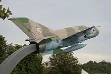The MiG-21 aircraft number 26112 Perešin used to defect was moved to the Heeresgeschichtliches Museum (military history museum) in Vienna and briefly shown to the public there.[2] It was publicly displayed at Zeltweg Air Base during the AirPower11 national air show in 2011.[2] After a protracted international ownership dispute, with competing claims from Croatia and Serbia,[2][4][5] the aircraft was handed over to Croatia in 2019.[6]