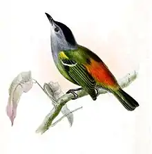 Subspecies E. c. peruviana is very similar to the nominate but their lower breast has a yellowish green tinge giving a gradual transition from the gray breast to the yellow-green belly. Subspecies E. c. venezuelana is known well only from the holotype, a female. Its nape and upper back are darker than the nominate's, its throat whiter, and its belly a paler yellow. E. c. guianensis has a darker and richer olive back than the nominate, with brighter yellow on the wing coverts.[8]
