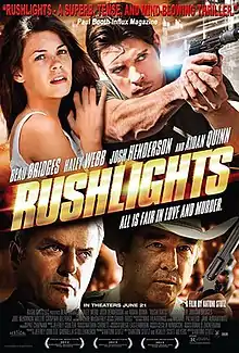 Rushlights is a 2013 American independent neo-noir thriller film written and directed by Antoni Stutz and starring Beau Bridges, Haley Webb, Josh Henderson and Aidan Quinn.[1][2][3] Rushlights was included in the official selections of the Montreal World Film Festival, the Shanghai International Film Festival, the Dallas International Film Festival as well as the Newport Beach Film Festival. An extended directors cut was released in 2016.[4][5][6][7][8]