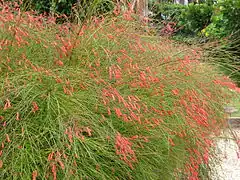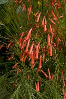 Russelia equisetiformis, the fountainbush,[1] firecracker plant, coral plant, coral fountain, coralblow or fountain plant, is a species of flowering plant in the family Plantaginaceae.