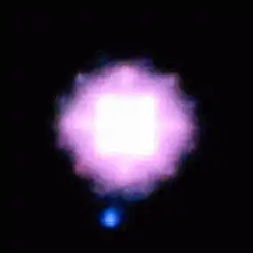 SCR 1845−6357 is a binary system, 13.1 light-years (4.0 parsecs) away in the constellation Pavo. The primary is a faint red dwarf. It has a brown dwarf companion. The primary red dwarf was discovered in 2004 by Hambly et al.,[8] while the secondary brown dwarf was later discovered in 2006.[9]
