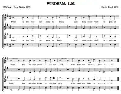- ↑ Sources for this paragraph: Marini 2003, p. 77, Temperley 1983, and the essay "Distant Roots of Shape Note Music" by Keith Willard, posted at the fasola.org web site Archived 16 May 2008 at the Wayback Machine.