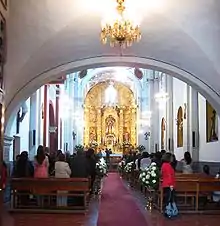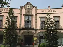 The modern community has its roots in the establishment of two monastery complexes called San Jacinto and El Carmen in the 16th century, but the real center would be El Carmen.[2] The Spanish town here was originally established with the name of San Jacinto Tenanitla.[5] El Carmen was begun in 1597 when in the indigenous leader of Coyoacán, Felipe de Guzmán Itzolinque, along with Andrés de Mondragón and Elvira Gutierrez, donated lands to the Carmelites in the Tenanitla and Chimalistac areas. The monks used the land to establish their monastery and a school for monks, with the school, named San Ángel, inaugurated in 1613. The monastery and school became wealthy and powerful, mostly due to the productively of the lands, especially the orchards which had, at one time, over 13,000 trees.[2][5] This prompted the community to rename itself San Ángel.[5]
