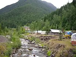 Following the 1891 discovery of silver by Eli Carpenter and Jack Seaton, thousands of prospectors sought the rich deposits of silver-lead ore.[6] Sandon silver mines were collectively the richest in the province during 1892–1900. After an ebb, World War I was the most productive mining period. The early 1950s, during the Korean War, brought a temporary peak in silver prices, and a rejuvenation of mining, before ending in 1953.[9] The Silvana Mine later operated, but became dormant in 1993. Klondike Silver Corp. have acquired the undersurface mine, but it is unclear whether any genuine exploration is being conducted.[11]