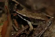 - ↑ IUCN SSC Amphibian Specialist Group (2018). "Sanguirana sanguinea". IUCN Red List of Threatened Species. 2018: e.T58709A114915766. doi:10.2305/IUCN.UK.2018-2.RLTS.T58709A114915766.en. Retrieved 17 November 2021.