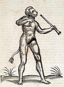 Satyrus (also known as callitrix or cericopithicus) is a species of ape described in some medieval bestiaries. It is said to always give birth to twins. Of these twins, it hates one, but loves the other. The ape is also described as lively and having a pleasant face. The satyrus was one of many creatures from folklore included in early editions of Carl Linnaeus' Systema Naturae, alongside other legendary creatures, under the wastebasket taxon of Animalia Paradoxa.[1] In translation, Linnaeus is quoted as saying that the satyrus is "hairy, bearded, with a manlike body, gesticulating much, very fallacious, is a species of monkey, if ever one has been seen."[1]