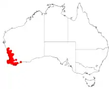 In Western AustraliaScaevola glandulifera is found in the IBRA bioregions of Geraldton Sandplains, Swan Coastal Plain, Avon Wheatbelt, Jarrah Forest, Warren and Esperance Plains (or in the South West Botanical Province.[4]
