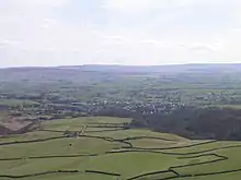 This Scar itself is the end of a spur running westwards from Whernside, one of the Three Peaks, towards Ingleton, North Yorkshire,[1] and the beds of limestone project to a height of 120 metres (390 ft) above sea level.[2] Looking out towards the west from Twisleton Scar is Ingleton, to the South, is Ingleborough, and to the north is the view up the Kingsdale valley.[3] The settlement consists of a handful of buildings, one of which is Twisleton Hall.[4] The road into the settlement leaves the old Roman Road from Ingleton (Oddies Lane) into Chapel-le-Dale.[5]